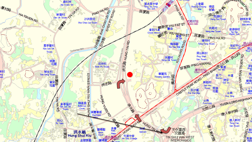元朗公路--直到-->天水圍西交匯處【EXIT15-->洪天路【洪水橋方向】-->